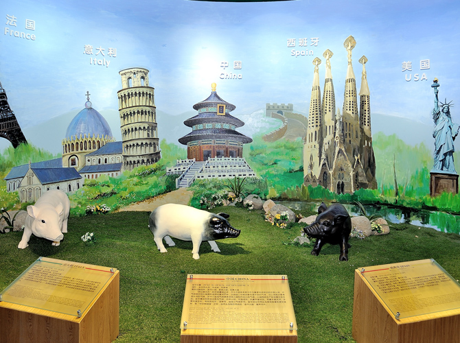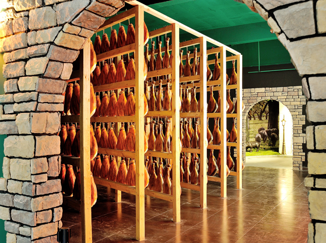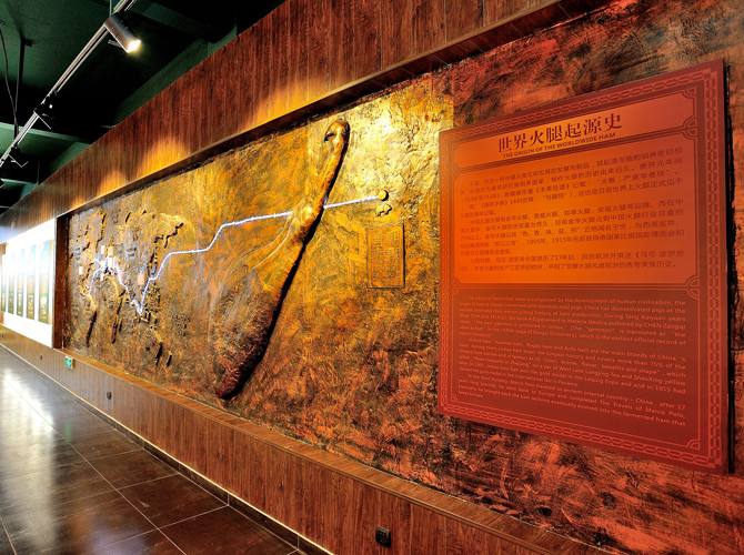 世界火腿博覽館是一個以世界火腿為主題的博覽館,用歷史-地域-工藝-文化為線索,通過展板、照片、聲光和布景等手法,翔實介紹了中國金華火腿、西班牙伊比利亞火腿、意大利帕爾瑪火腿、法國科西嘉火腿和巴黎火腿、美國的鄉村火腿等世界知名火腿的歷史人文,消費習俗、制作工藝、火腿美食等。