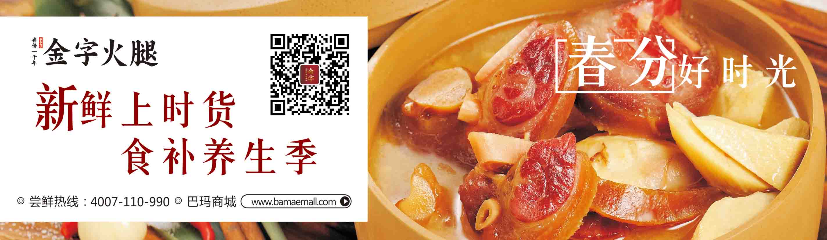 春分之后,竹筍一天一天長高,到清明時肉質(zhì)開始變老,食之漸漸無復初筍之鮮嫩口感。而待到“江南四月櫻桃紅,筍芽出土千萬叢”時,則筍期已過,再欲嘗鮮筍之美味,只好更待明年了。其實“腌篤鮮”可以引申成一種烹調(diào)的手法:火腿咸肉與新鮮肉類的合烹。類似的代表作有很多:咸肉燉蹄髈,火腿蒸鱔魚等等。金字三月新腿上架,備一條火腿,過了季節(jié),用火腿做點其他時令的“腌篤鮮”美食是一個不錯的選擇。