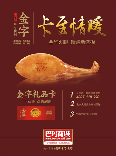 作為一家上市公司——金字火腿推出的禮品卡,禮品卡多年信譽(yù),廣受消費(fèi)者的真心歡迎,每年回頭客無數(shù),而更重要的是,金字每年把產(chǎn)品的品質(zhì)和備貨做到更好,禮品卡內(nèi)產(chǎn)品都是公司層層品質(zhì)歷練的熱銷產(chǎn)品,用火腿、臘肉、香腸這些實(shí)在心意,去感動每一位朋友。如今,更是可以通過手機(jī)微信關(guān)注金字火腿,盡享中華美食同時,與朋友分享禮品卡里所蘊(yùn)含的真情實(shí)意。
