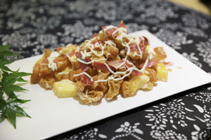“金字百變火腿”創(chuàng)意秀,遍尋民間家常火腿菜的創(chuàng)意做法。征集消息發(fā)出至今,已有不少市民愿意一秀才藝。?在這個(gè)過(guò)程中,有專(zhuān)業(yè)大廚,有退休老人,有美女廚娘,也有這個(gè)城市里最普普通通的上班族。不可否認(rèn),大廚、專(zhuān)業(yè)人士們的擺盤(pán)、用料更為講究,但其實(shí),很多時(shí)候,帶給我們驚喜的卻反倒是那些看上去普普通通,甚至連名字都是現(xiàn)取的家常菜,夠自然,夠純粹,甚至,還經(jīng)常能從中發(fā)現(xiàn)一些小驚喜。或許,也就是做菜人的這些小心思,成就了我們這些品嘗者味蕾的驚喜,就像這次來(lái)應(yīng)征的這桌火腿菜,看著普通,吃到的人,微笑卻無(wú)一不由心綻